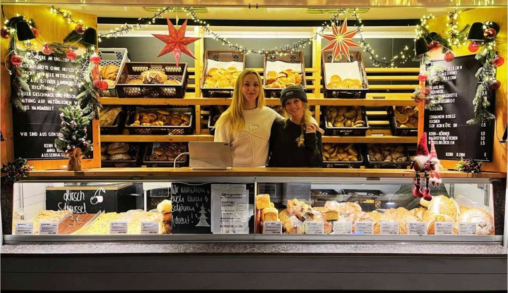 Im Gegensatz zu den meisten Bäckereien backen wir nicht nachts, sondern starten gegen 6 Uhr morgens. Dadurch sind unsere Backwaren mega frisch, zum Teil sogar noch warm, wenn ihr ab 15 Uhr an unsere Stände kommt. Und wir Bäcker finden normale Arbeitszeiten auch viel schöner.